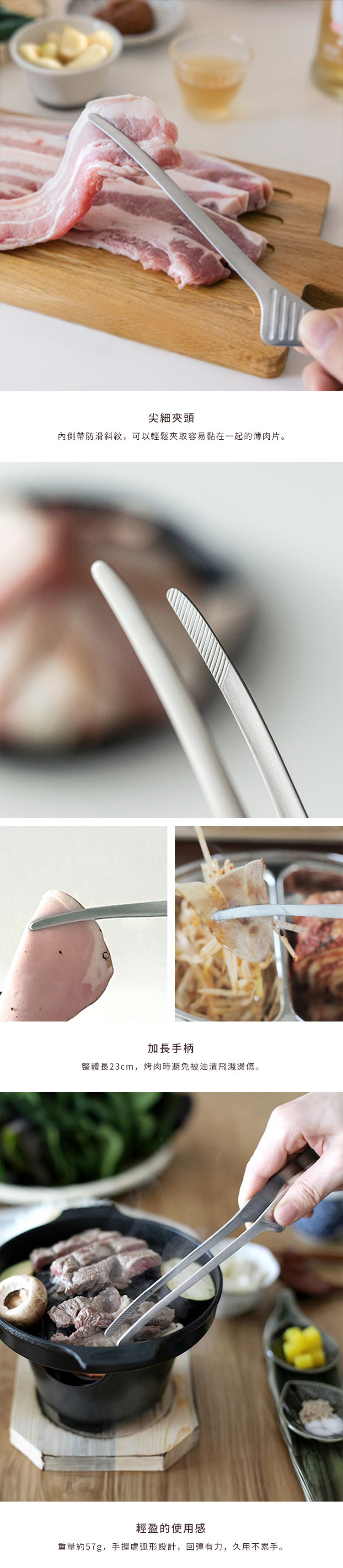 .尖細夾頭,可輕鬆夾取各類食材