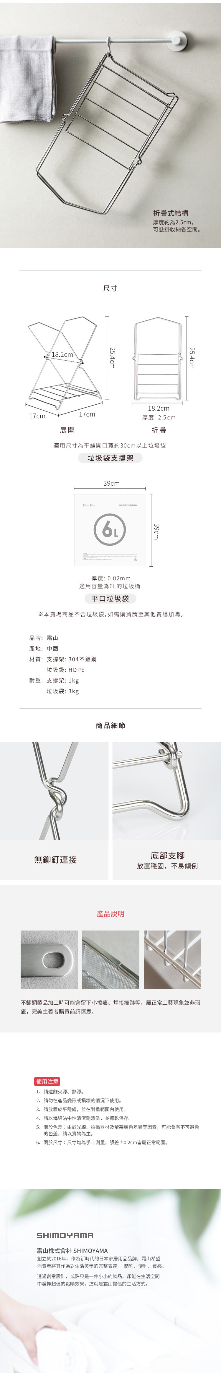 尺寸:[展開]寬17×深18.2×高25.4cm、[折疊]寬18.2×深2.5×高25.4cm 材質:304不鏽鋼 耐重:1kg 產地:中國 ※尺寸皆為人工測量,誤差±0.2cm屬正常範圍。