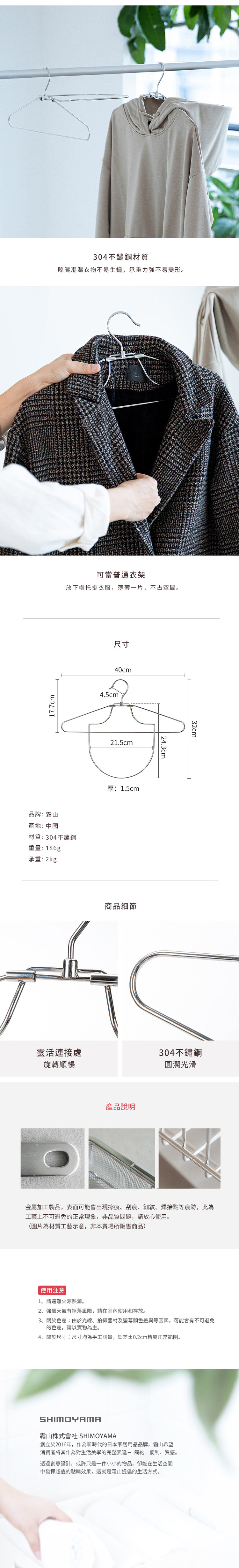 尺寸:長40×寬32(含帽托)×厚1.5cm、[帽托]長21.5×寬24.3、[掛勾]寬4.5cm 材質:304不鏽鋼 重量:186g 耐重:2kg 產地:中國 ※尺寸皆為人工測量,誤差±0.2cm屬正常範圍。