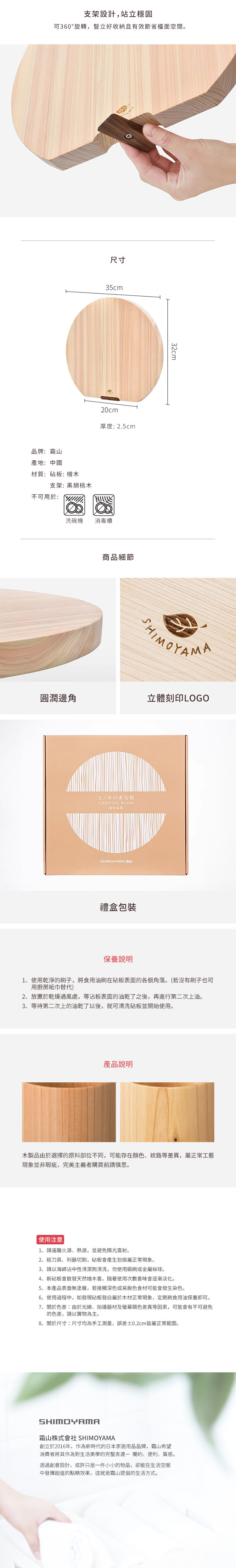 尺寸:長35×寬32×厚2.5cm 材質:[砧板]檜木、[支架]黑胡桃木 產地:中國 不適用於:洗碗機、消毒櫃 ※尺寸皆為人工測量,誤差±0.2cm屬正常範圍。