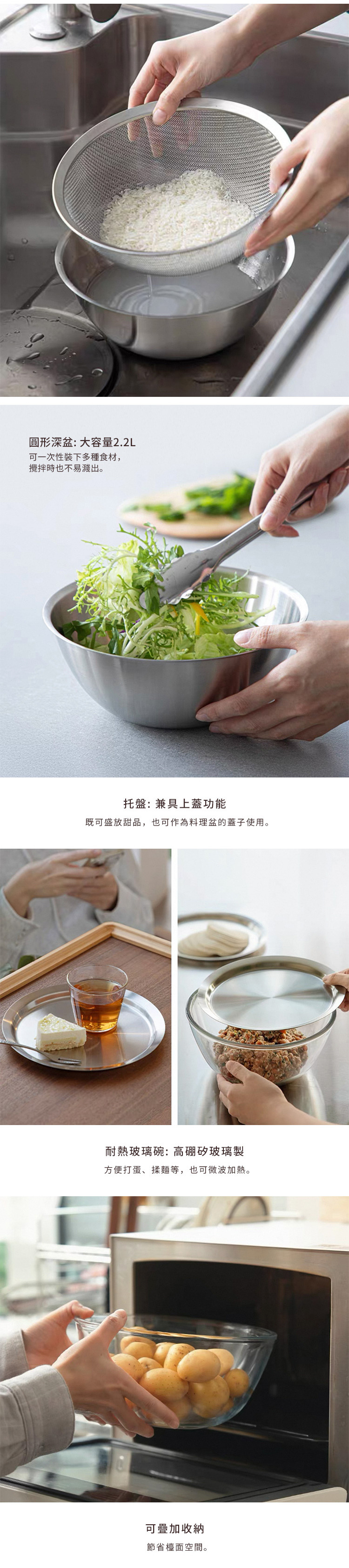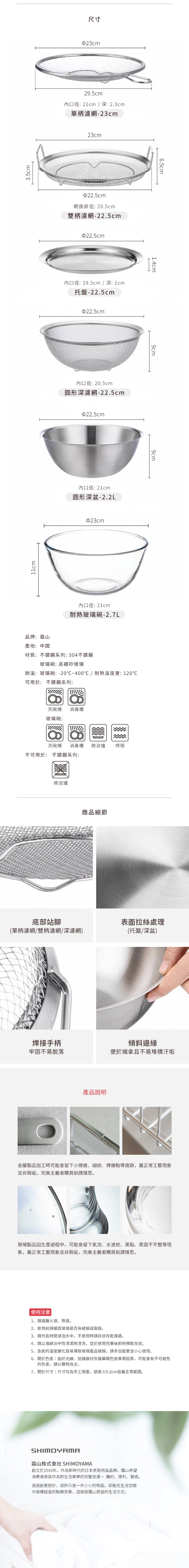 尺寸:直徑22.5×高9cm[內口徑]21cm 材質:304不鏽鋼 適用於:洗碗機、消毒櫃 不適用於:微波爐 產地:中國 ※尺寸皆為人工測量,誤差±0.2cm屬正常範圍。