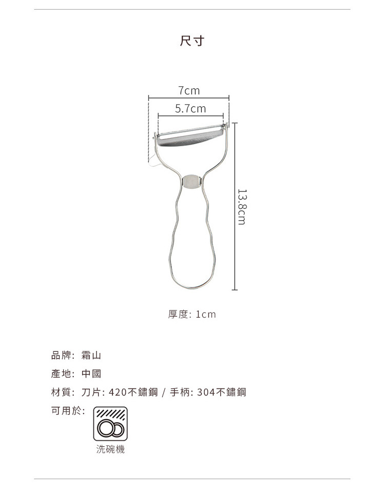 尺寸:長13.8×寬7cm、[厚]1cm 材質:[刀片]420不鏽鋼、[手柄]304不鏽鋼 產地:中國 適用於:洗碗機 ※尺寸皆為人工測量,誤差±0.2cm屬正常範圍。