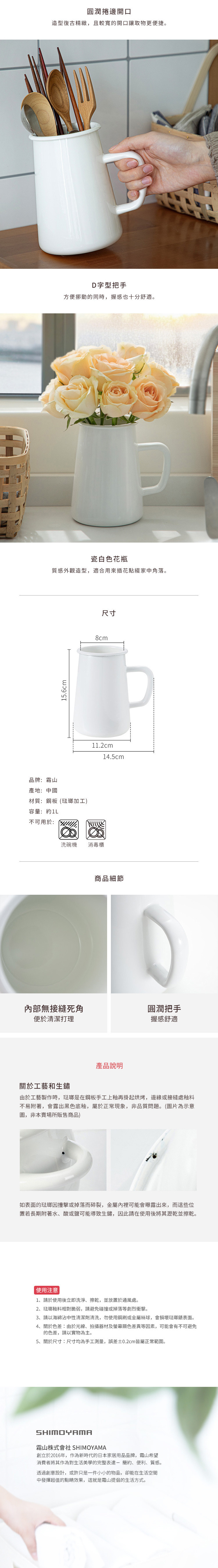尺寸:直徑(含手柄)14.5cm×高15.6cm 材質:鋼板(琺瑯加工) 容量:約1L 產地:中國 不適用於:洗碗機、消毒櫃 ※尺寸皆為人工測量,誤差±0.2cm屬正常範圍。