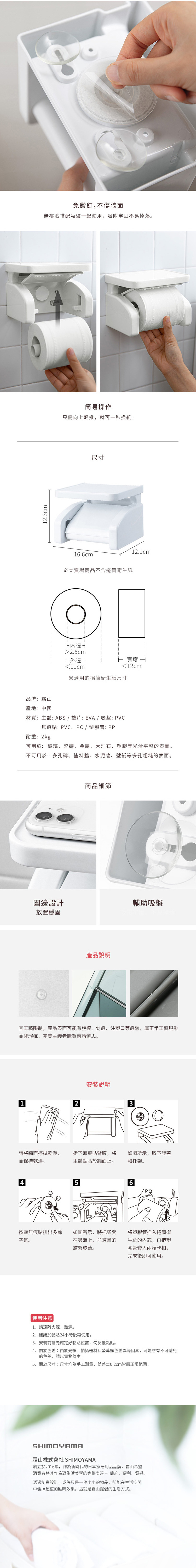 尺寸:寬16.6×深12.1×高12.3cm、[適用捲筒衛生紙尺寸]外徑小於11×內徑大於2.5×寬12cm