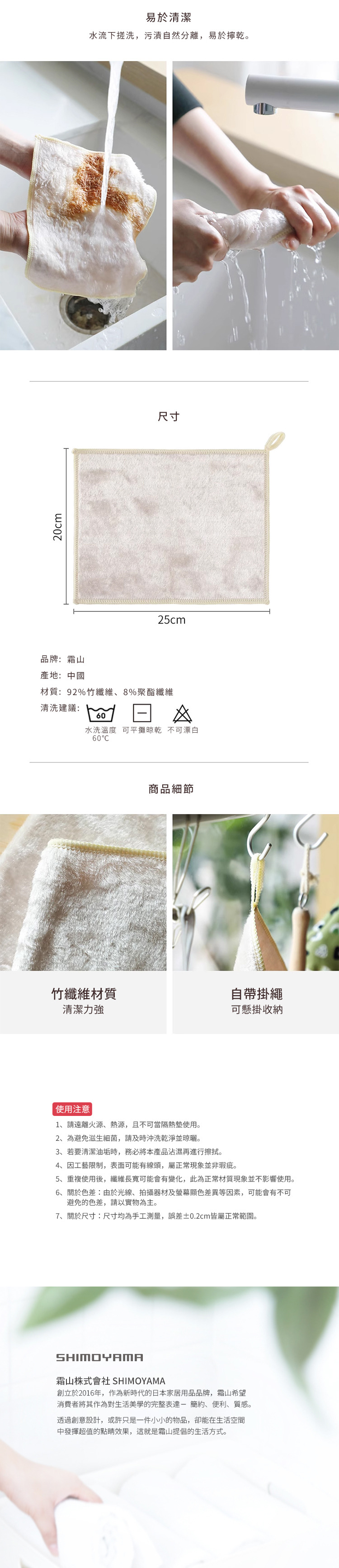 尺寸:長25×寬20cm 材質:92%竹纖維、8%聚酯纖維 產地:中國 ※尺寸皆為人工測量,誤差±0.2cm屬正常範圍。