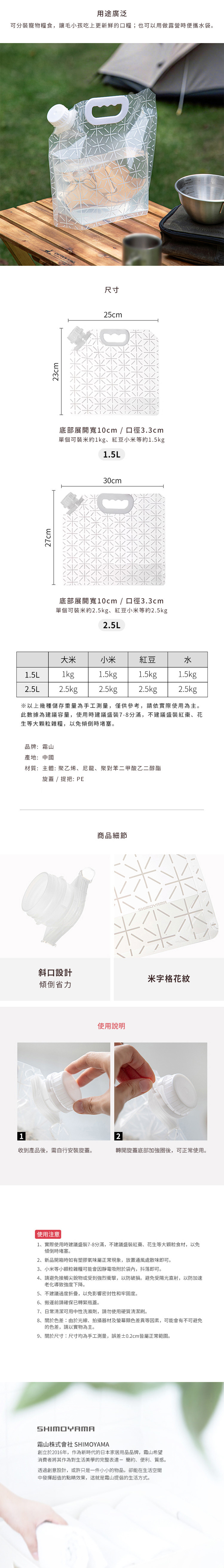 尺寸:[主體]寬30×高27cm、[底部寬]10cm、[口徑]3.3cm 材質:[主體]聚乙烯、尼龍、聚對苯二甲酸乙二醇酯、[蓋子、提把]PE 容量:2.5L 產地:中國 ※尺寸皆為人工測量,誤差±0.2cm屬正常範圍。