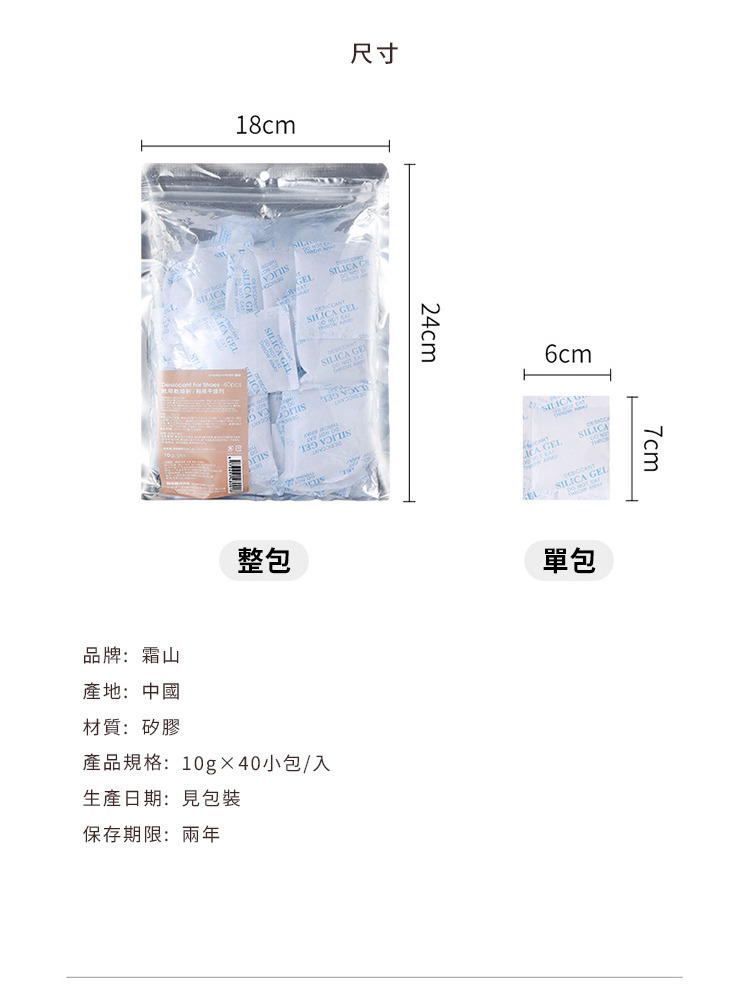 尺寸:[單包]長7×寬6cm 材質:矽膠 產品規格:10g×40小包/入 保存期限:兩年 產地:中國 ※尺寸皆為人工測量,誤差±0.2cm屬正常範圍。