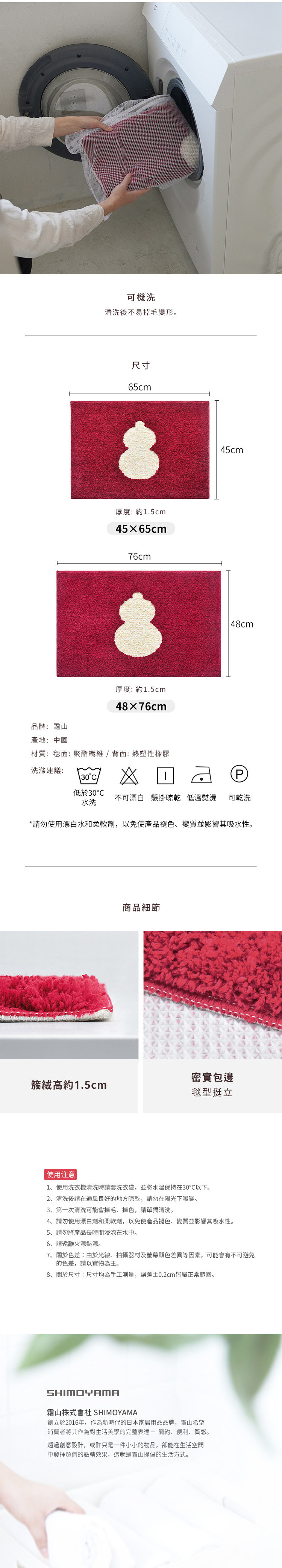 尺寸:長76×寬48×厚1.5cm 材質:[毯面]聚酯纖維、[背面]熱塑性橡膠 產地:中國 ※尺寸皆為人工測量,誤差±0.2cm屬正常範圍。