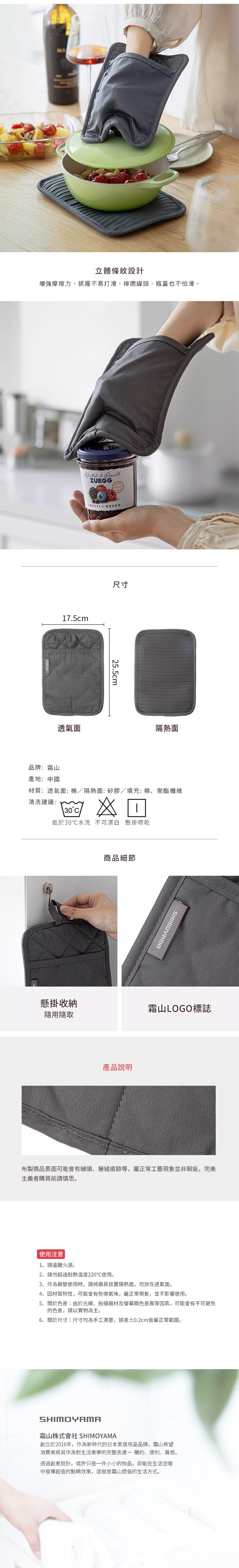 尺寸:長25.5×寬17.5cm 材質:[透氣面]棉、[隔熱面]矽膠、[填充]棉、聚酯纖維 產地:中國 ※尺寸皆為人工測量,誤差±0.2cm屬正常範圍。