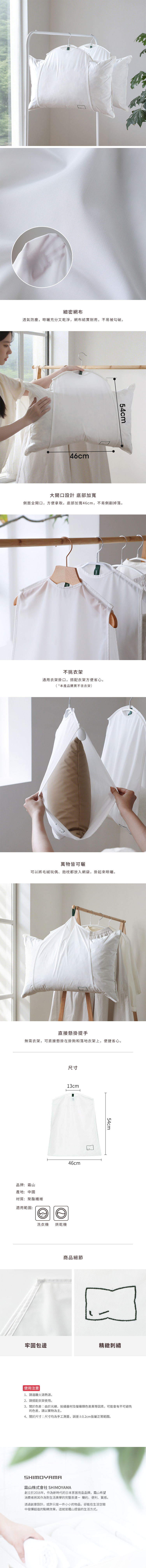 尺寸:寬46×高54cm、[衣架掛口口徑]寬13cm 材質:聚酯纖維 產地:中國 適用範圍:洗衣機、烘乾機 ※尺寸皆為人工測量,誤差±0.2cm屬正常範圍。
