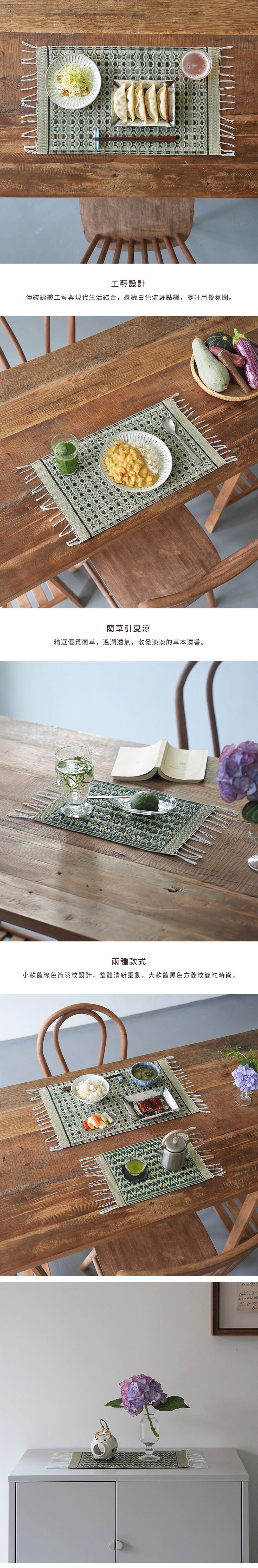 尺寸:長51×寬30cm 材質:[主體]藺草、[內芯線]聚酯纖維 耐溫:60℃ 產地:中國 ※尺寸皆為人工測量,誤差±0.2cm屬正常範圍。