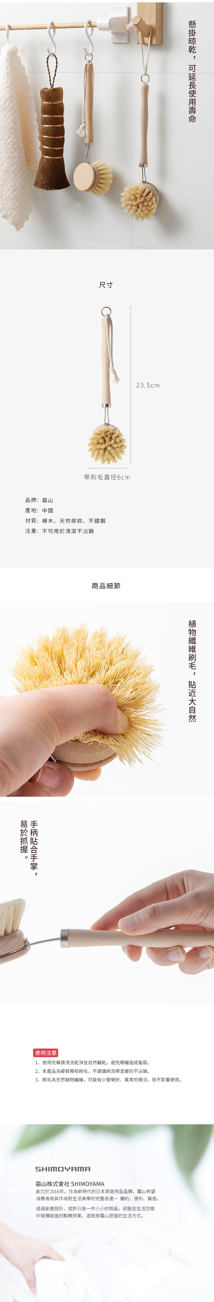 尺寸:直徑6x長23.5cm 材質:櫸木、天然椰棕、不鏽鋼 產地:中國 備註:不可用於清潔不沾鍋 ※尺寸皆為人工測量,誤差±0.2cm屬正常範圍